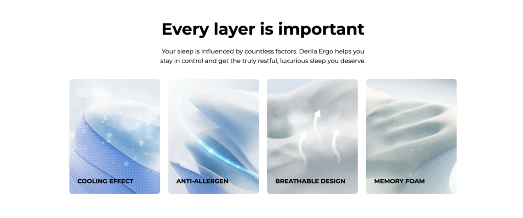 What makes Derila Ergo Pillow so effective isn’t just its ergonomic design, but the premium materials and thoughtful construction that support better sleep, spinal alignment, and natural pain relief.