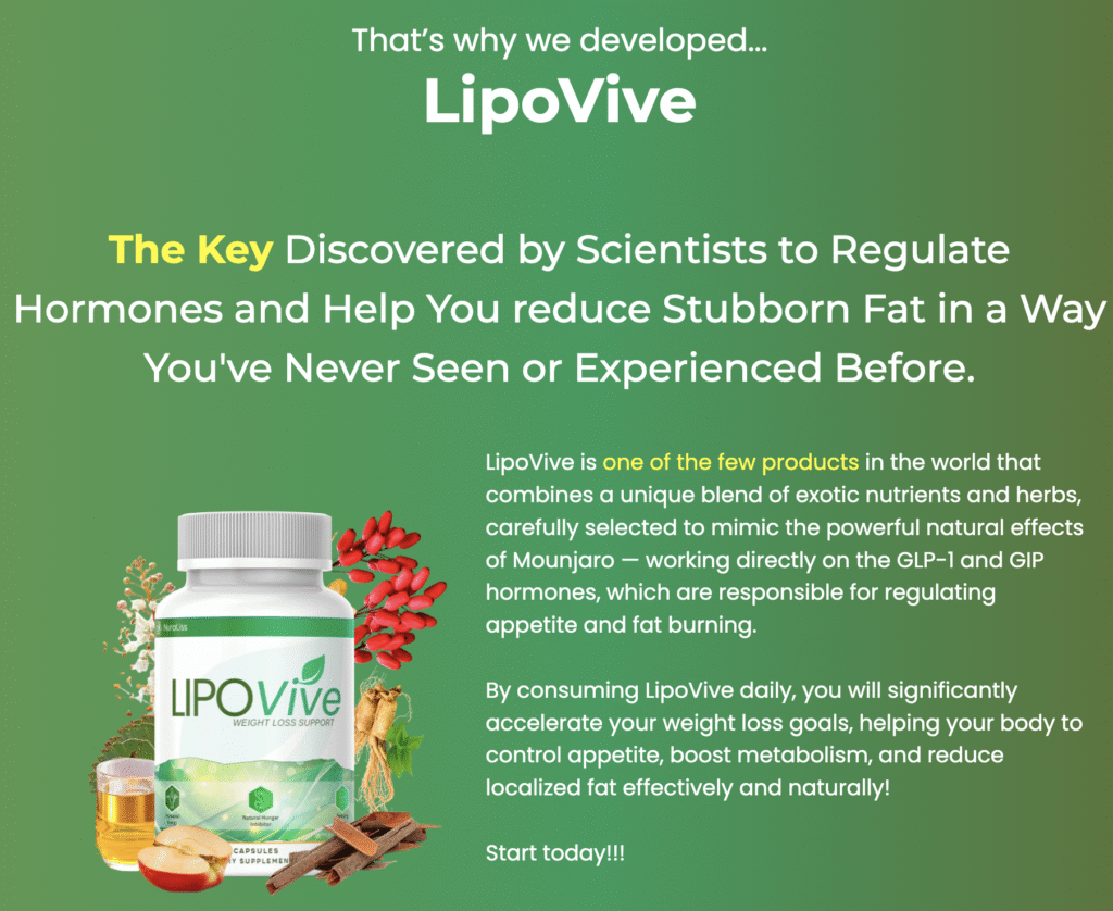 LipoVive works intelligently by combining natural ingredients that boost metabolism and improve the body’s energy utilization. Instead of forcing aggressive weight loss, it optimizes internal processes such as fat oxidation, hormonal balance, and digestive health. This makes LipoVive stand out as a supplement focused on sustainable, long-term results rather than quick fixes.